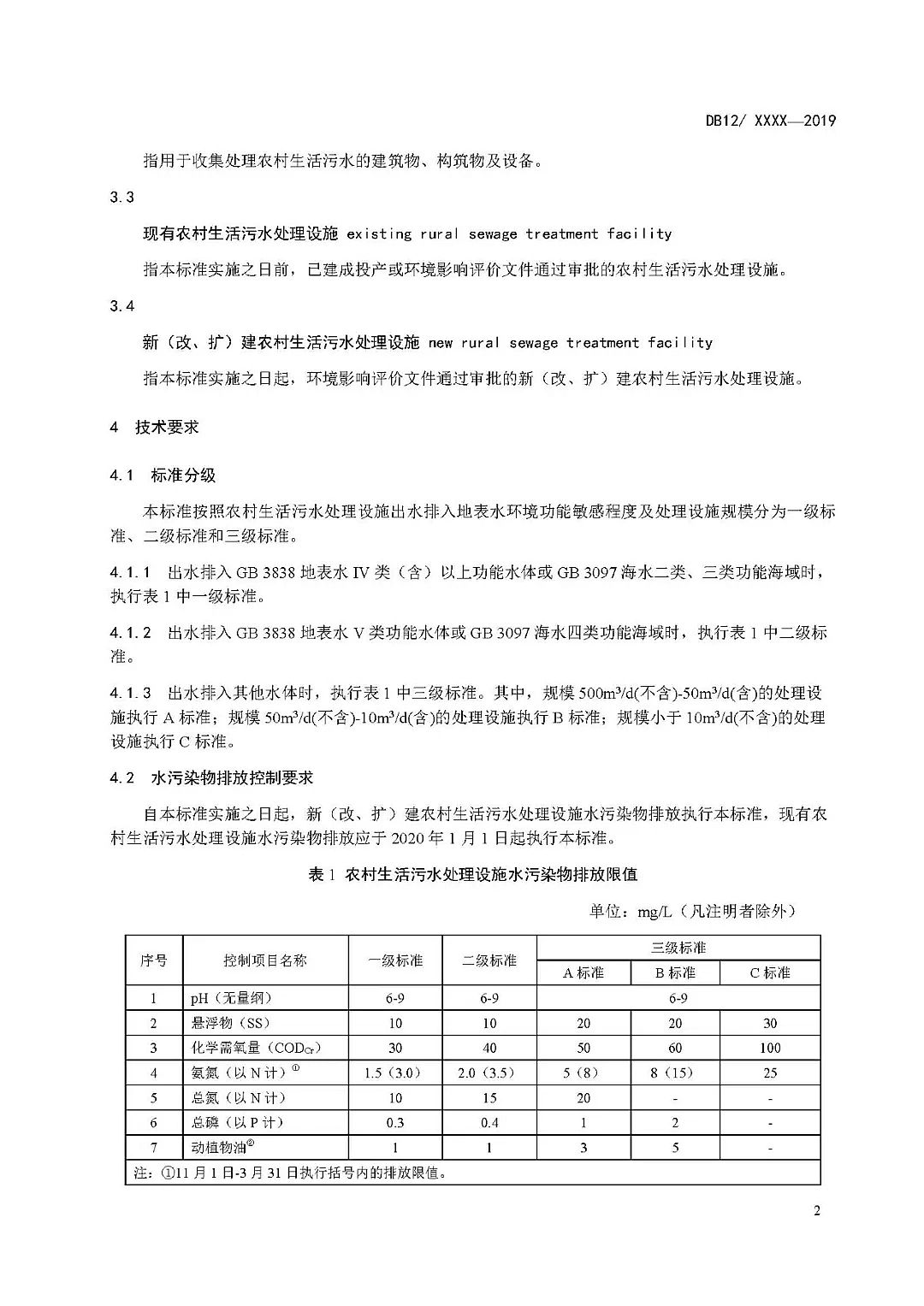 標準實施之日起新建、改建、擴建的村莊生活污水處理設施。